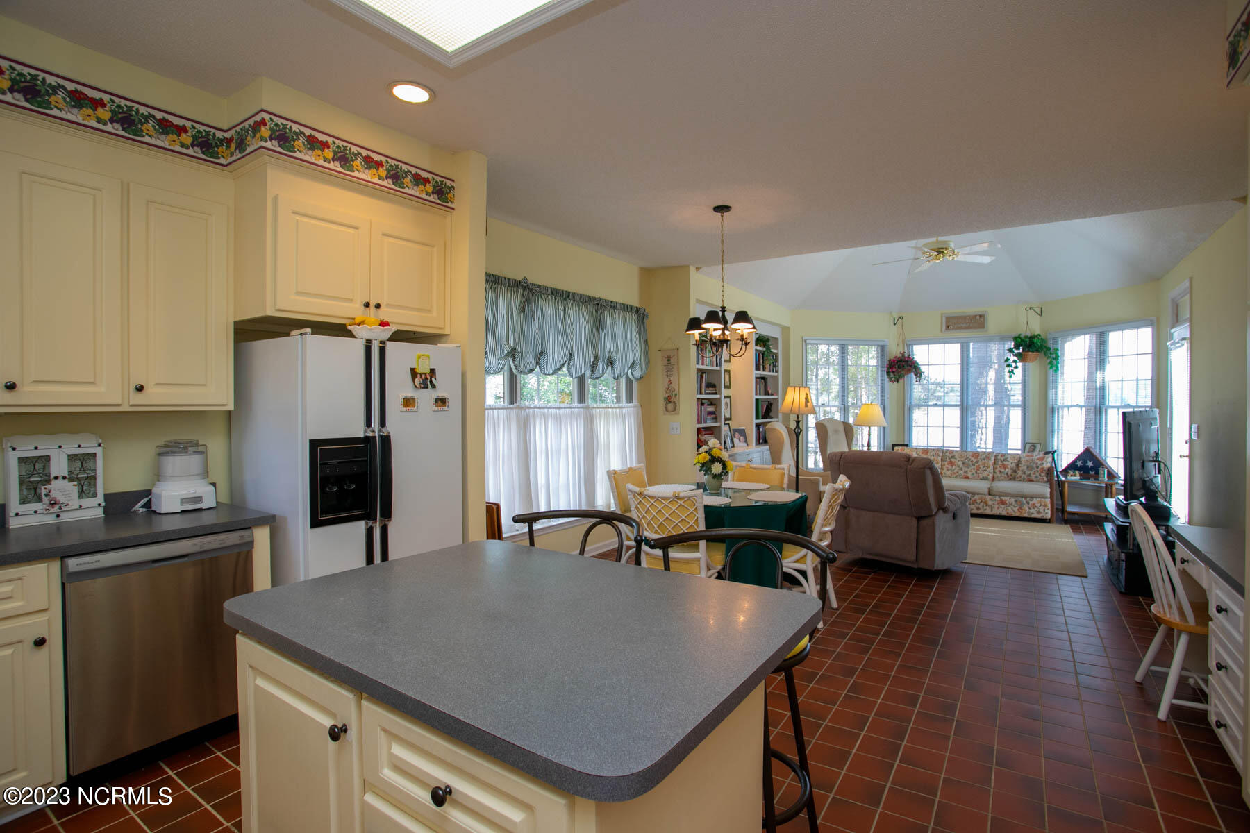 Charming waterfront home in desirable Seven Lakes West offers a light, open floorplan with fantastic views of Lake Auman across the back! A soaring vaulted ceiling spans the living and dining rooms with lots of tall windows and French doors that open to a great back deck, perfect for relaxing and taking in views of the lake. A wonderful family room has a vaulted ceiling, bay wall of windows overlooking the lake, glass door to the deck, built-in book cases and is open to the breakfast nook and kitchen, which has lots of white wood cabinetry and an island with breakfast bar. The owners' suite has a spacious bedroom with tray ceiling, ceiling fan, bay wall of windows overlooking the lake, glass door to the deck and en-suite bath with a garden whirlpool centering his and her vanities, step-in shower and walk-in closet with built-ins. The two guest bedrooms are connected by full bathroom. One of the bedrooms has a bump-out wall with three tall windows and seating bench. All the bedrooms have laminate flooring and ceiling fans. A large backyard has a stone paver walk down to the lake and dock. If you are looking for a special home on the water, this is a great opportunity to live in the area's premier gated lake and golf community that offers lots of wonderful amenities including swimming and boating in the 1,000-acre spring-fed Lake Auman, marina, beach, pool, tennis and basketball courts, picnic area and community center. Seven Lakes is also home to Beacon Ridge Country Club and its 18-hole golf course.